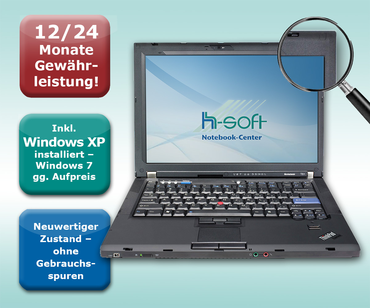 Gerät wird im Originalzustand recovered mit Windows XP Pro installiert geliefert. Gesicherte Recovery-Partition + "Access IBM"-Tools wie bei Werksauslieferung vorhanden. COA Lizenzaufkleber: Vista Business. Komplette Aktualisierung auf XP Pro SP3 mit allen Updates + Viren-Scanner ist durchgeführt. Sie können sofort sicher arbeiten!